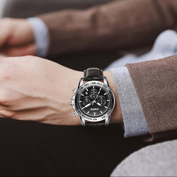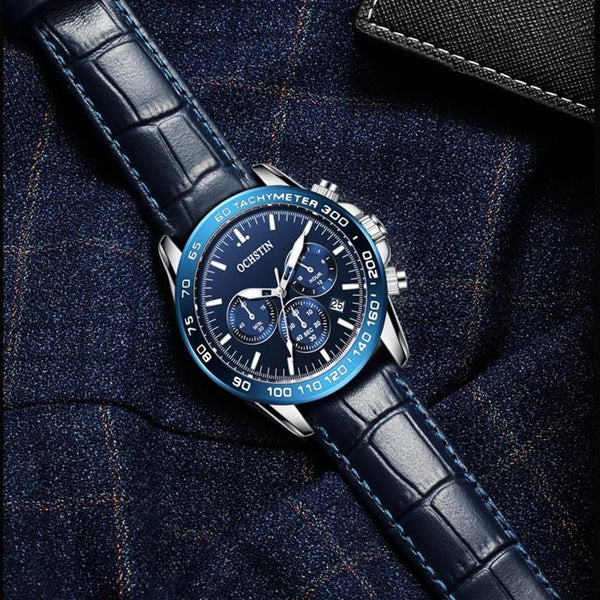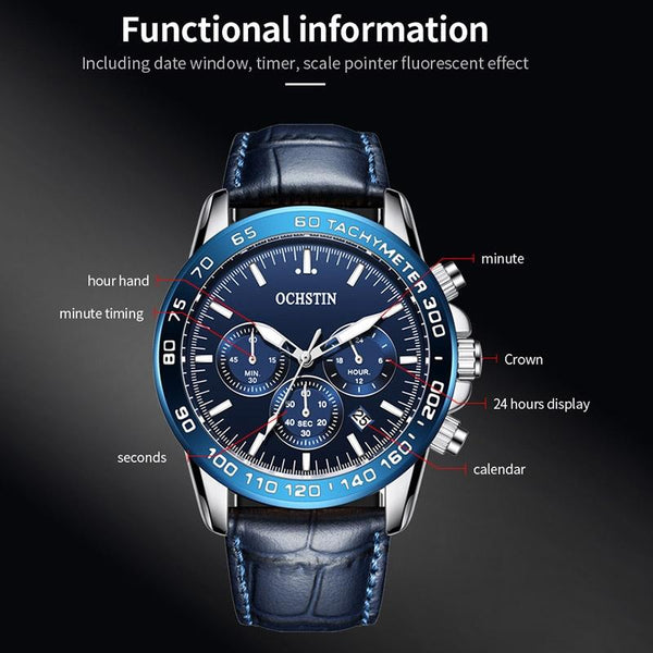 OCHSTIN 6117C Multifunctional Quartz Waterproof Men Leather Watch(Silver+Coffee)