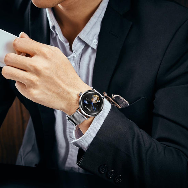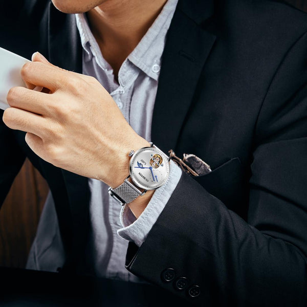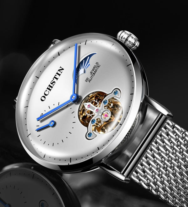 OCHSTIN 6121 Flywheel Mechanical Watch Fashion Hollow Full Automatic Mechanical Watch Business Men Watch Stainless Steel WatchWaterproof Watch(White)