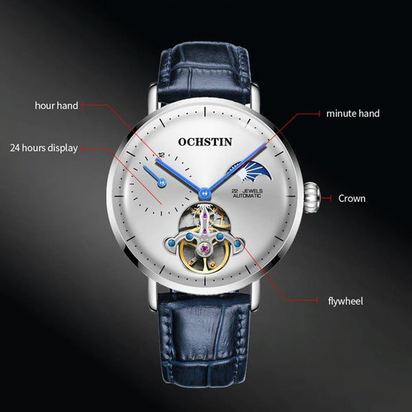OCHSTIN 6121B Masterpiece Tourbillon Mechanical Men Watch(Silver-Blue)