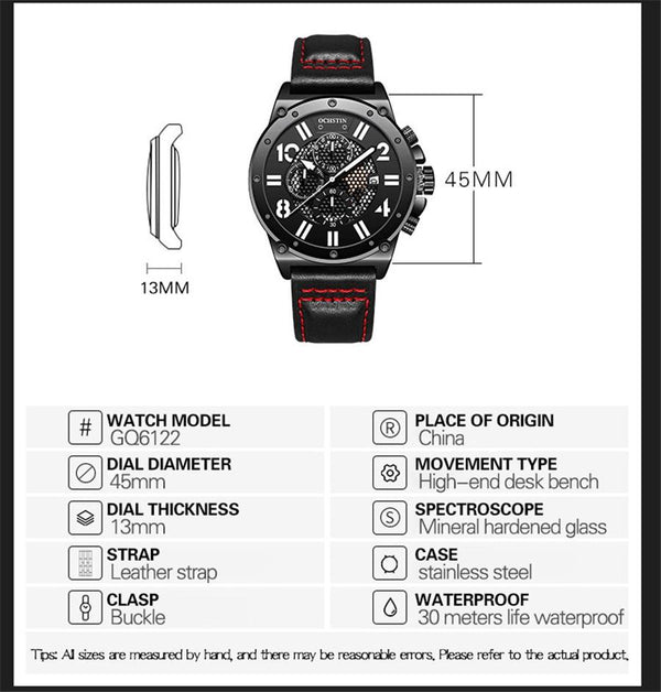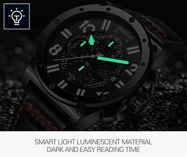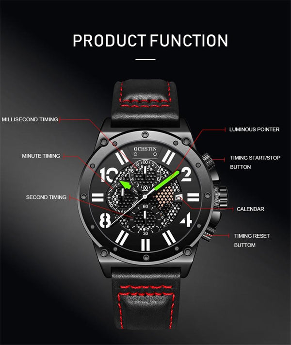 Ochstin 6122 Multi Function Quartz Watch Sports Luminous Waterproof Watch Calendar Leather Men Watch(Silver Black)