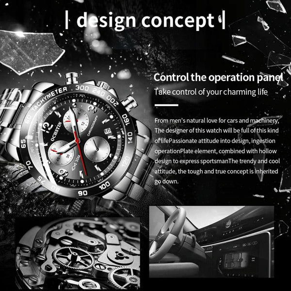 OCHSTIN 6123B Multifunctional Quartz Waterproof Luminous Steel Strap Men Watch(Black 02)