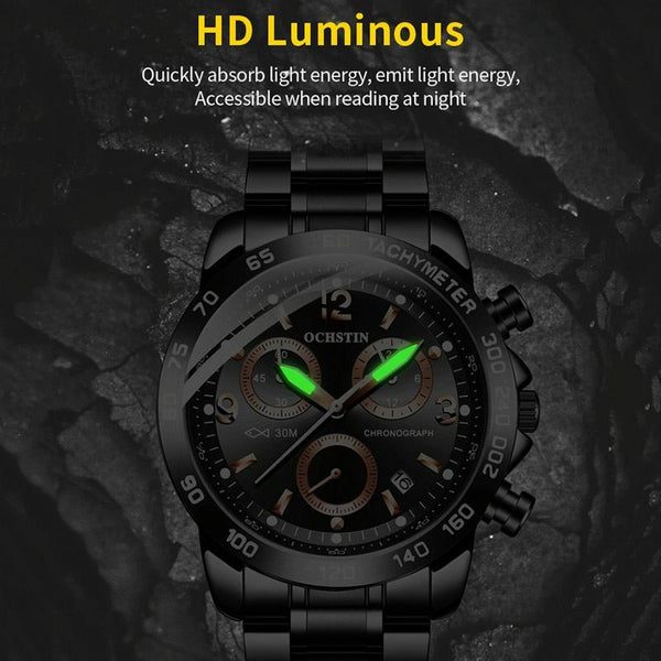 OCHSTIN 6123B Multifunctional Quartz Waterproof Luminous Steel Strap Men Watch(Silver Coffee)