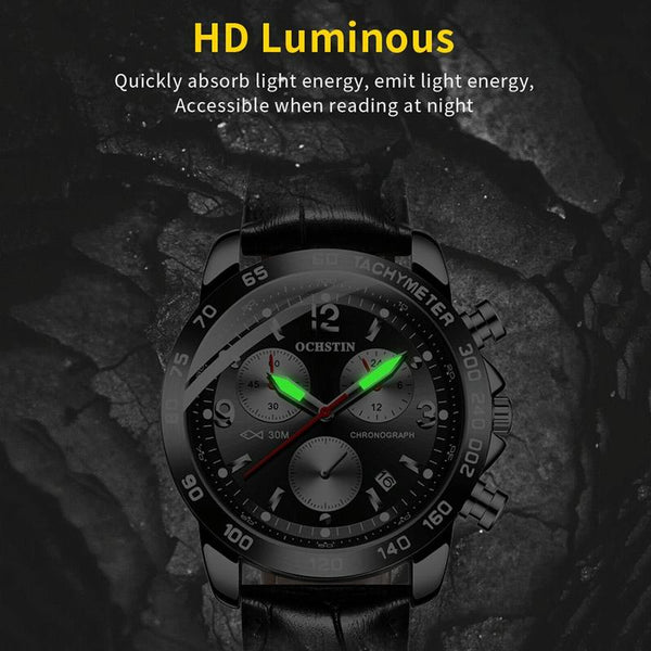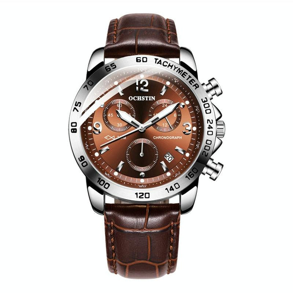 OCHSTIN 6123C Multifunctional Quartz Waterproof Luminous Men Leather Watch(Silver Coffee)