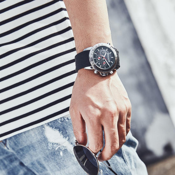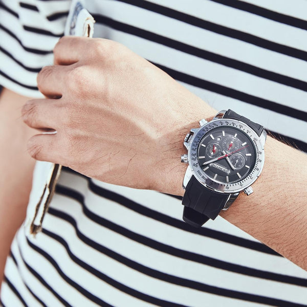 OCHSTIN 6125A Multi Function Chronograph MenSports Silicone Quartz Waterproof MenWatch( Silver)