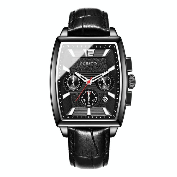 OCHSTIN 6133A Multifunctional Quartz Waterproof Luminous Men Leather Watch(Black)