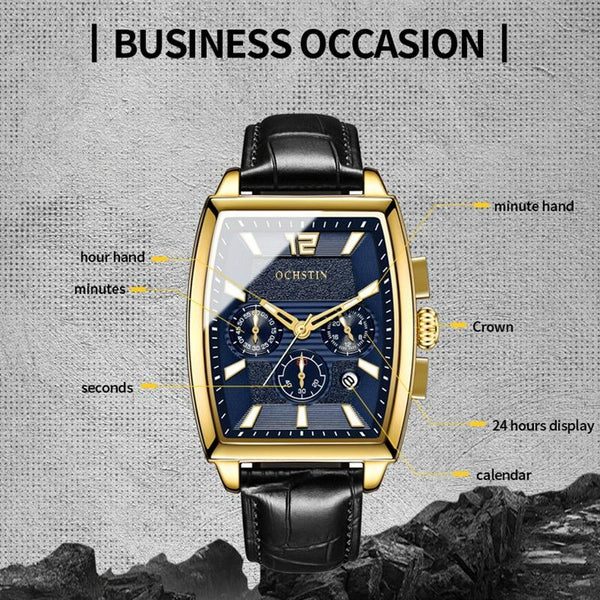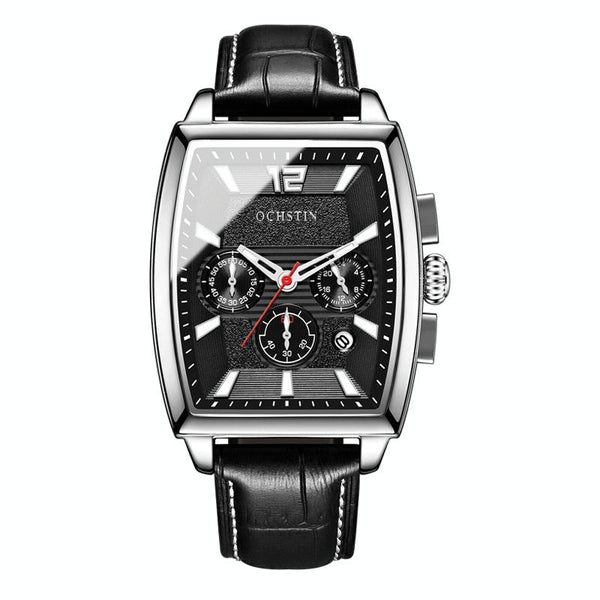 OCHSTIN 6133A Multifunctional Quartz Waterproof Luminous Men Leather Watch(Silver Black)