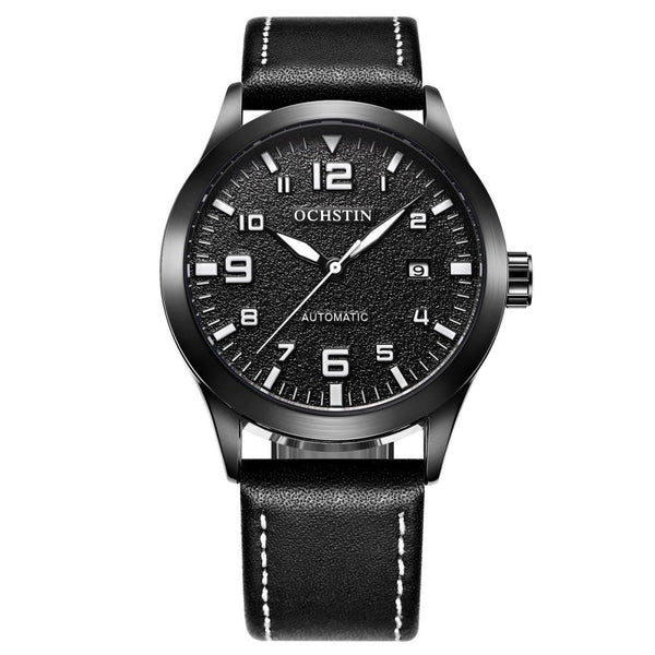 Ochstin 62028 Fashion Fully Automatic Mechanical Watch Waterproof MenLeisure Mechanical Watch Calendar Leather Watch(Black)