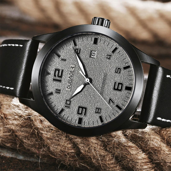 Ochstin 62028 Fashion Fully Automatic Mechanical Watch Waterproof MenLeisure Mechanical Watch Calendar Leather Watch(Grey)