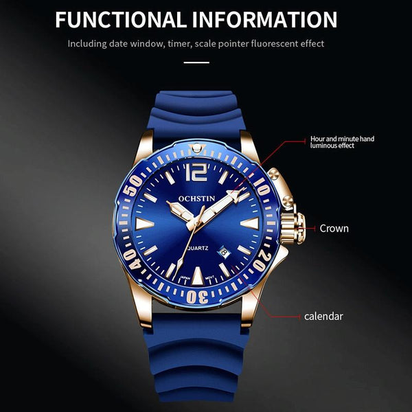 OCHSTIN 7002A Multifunctional Quartz Waterproof Luminous Men Watch(Silver+Blue)