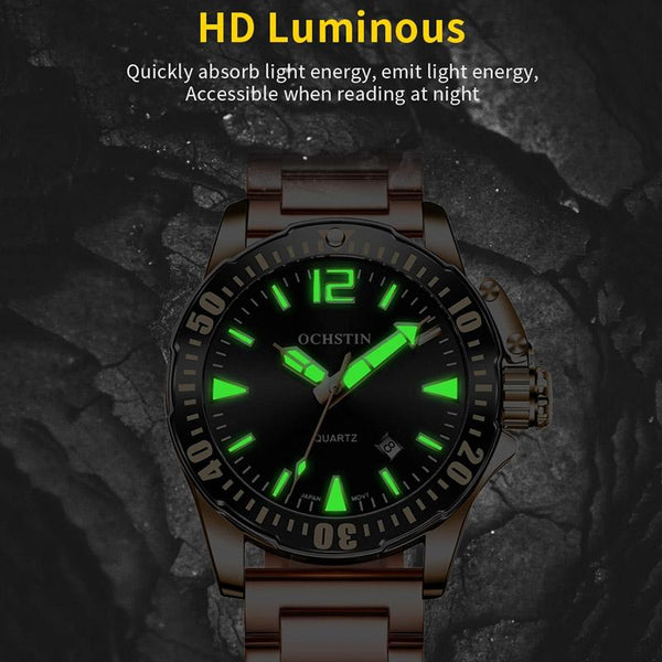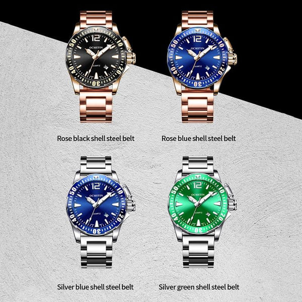 OCHSTIN 7002B Multifunctional Quartz Waterproof Luminous Steel Strap Men Watch(Rose Gold+Black)