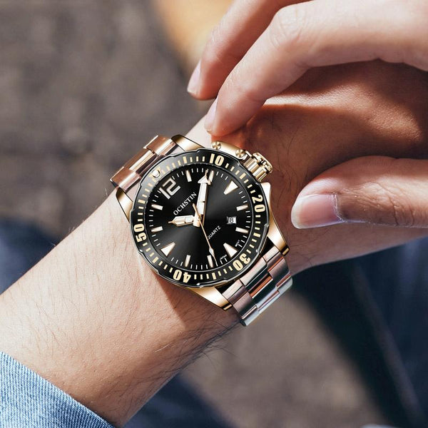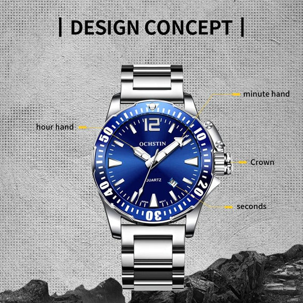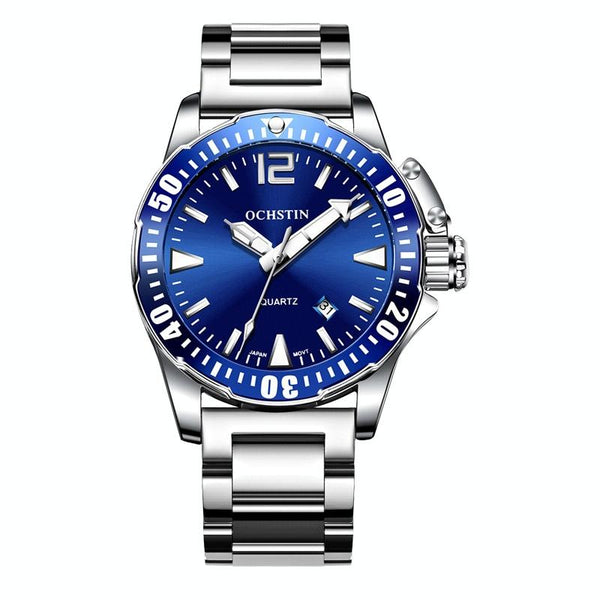 OCHSTIN 7002B Multifunctional Quartz Waterproof Luminous Steel Strap Men Watch(Silver+Blue)