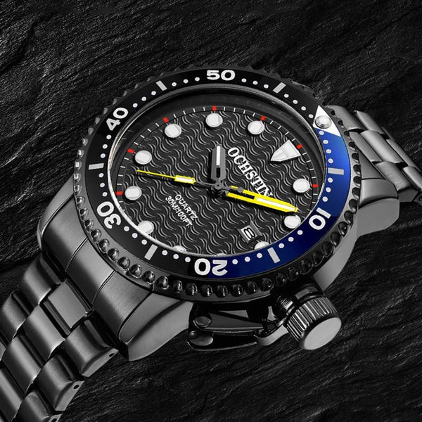 OCHSTIN 7003A Multifunctional Quartz Waterproof Luminous Steel Strap Men Watch(Black)