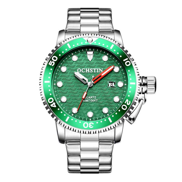 OCHSTIN 7003A Multifunctional Quartz Waterproof Luminous Steel Strap Men Watch(Silver+Green)