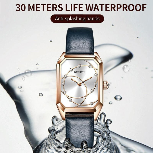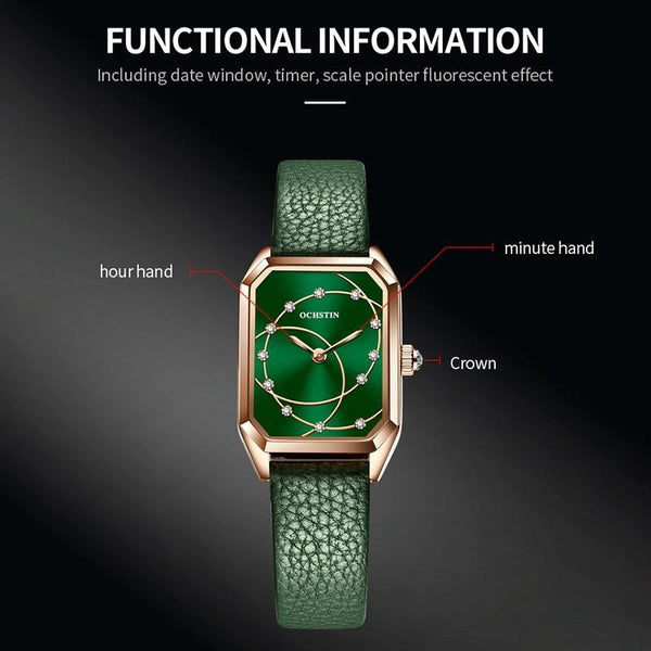 OCHSTIN 7008C Parangon Series Fashion Casual Leather Strap Quartz Watch(Silver+Red)