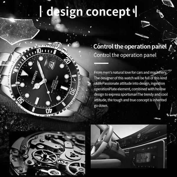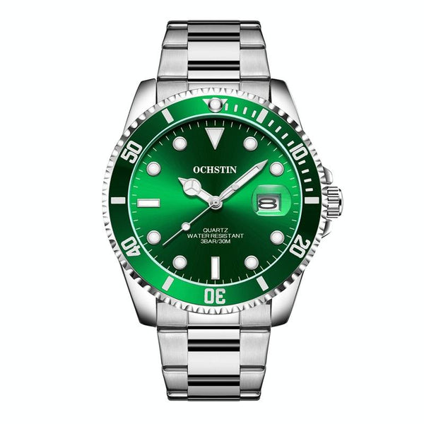 OCHSTIN 7019A Multifunctional Quartz Waterproof Luminous Steel Strap Men Watch(Gren+Silver)