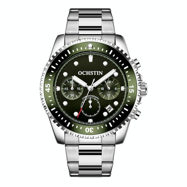 OCHSTIN 7019C Multifunctional Quartz Waterproof Luminous Steel Strap Men Watch(Dark Green+Silver)