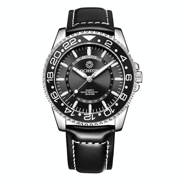OCHSTIN 7019G Multifunctional Quartz Waterproof Luminous Men Leather Watch(Black)