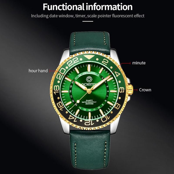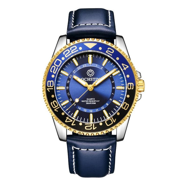 OCHSTIN 7019G Multifunctional Quartz Waterproof Luminous Men Leather Watch(Blue)
