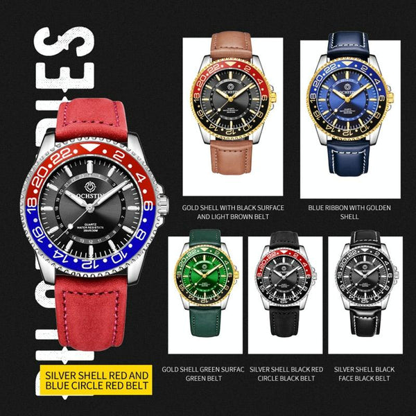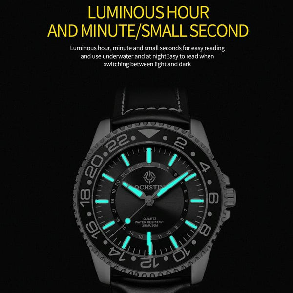 OCHSTIN 7019G Multifunctional Quartz Waterproof Luminous Men Leather Watch(Brown)