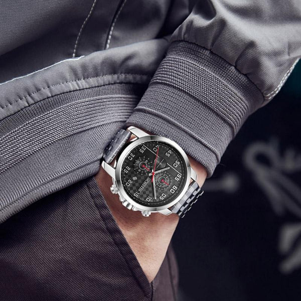 OCHSTIN 7079 Multifunctional Quartz Waterproof Luminous Steel Strap Men Watch(Black Silver)