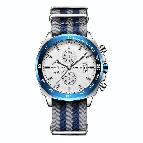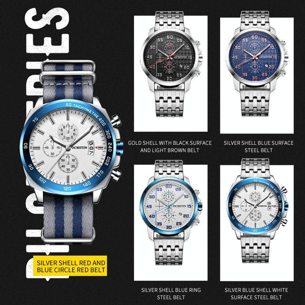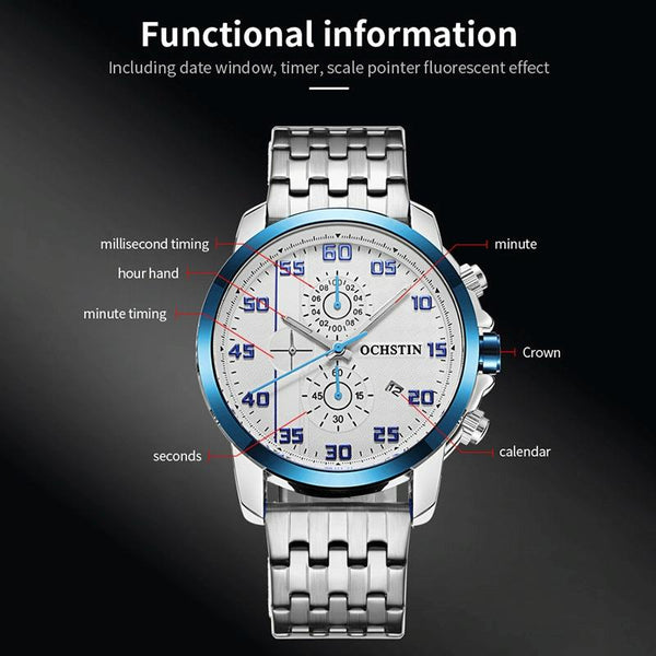 OCHSTIN 7079 Multifunctional Quartz Waterproof Luminous Steel Strap Men Watch(Silver Blue)