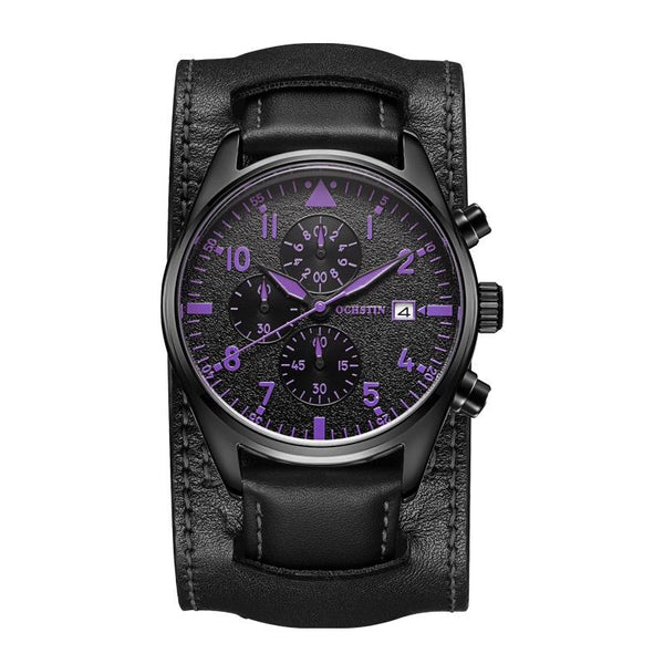 Ochstin 7227 Multifunctional Business Leather Wrist Wrist Waterproof Quartz Watch(Purple+Black)