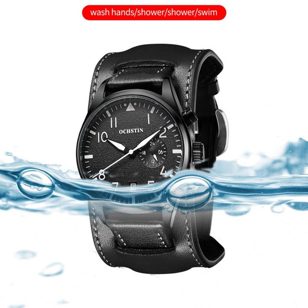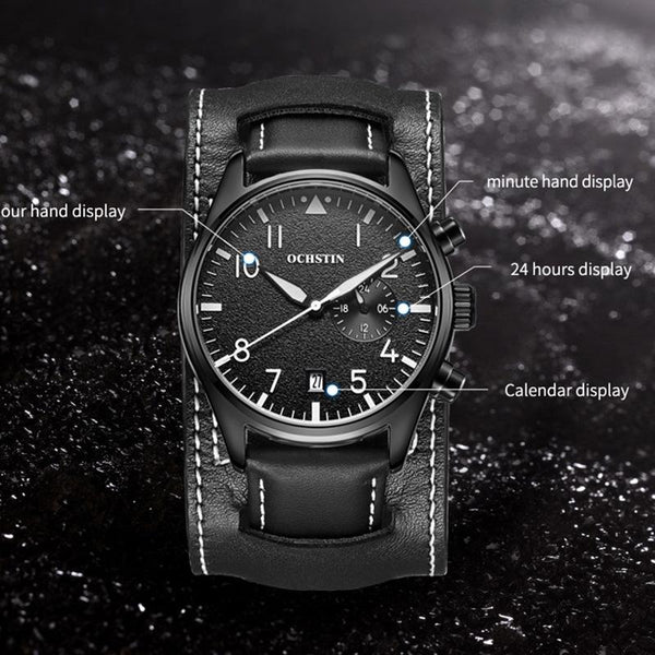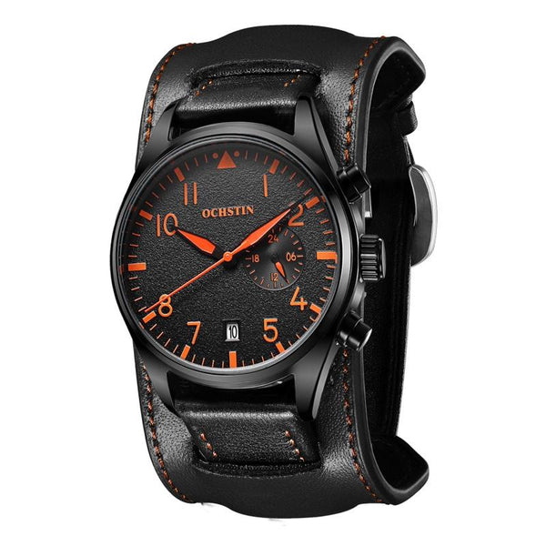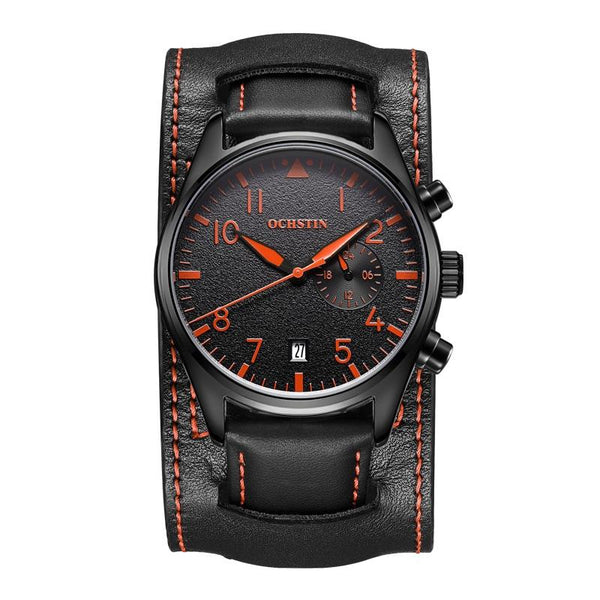 Ochstin 7228 Multifunctional Business Leather Wrist Wrist Waterproof Quartz Watch(Black+Orange)