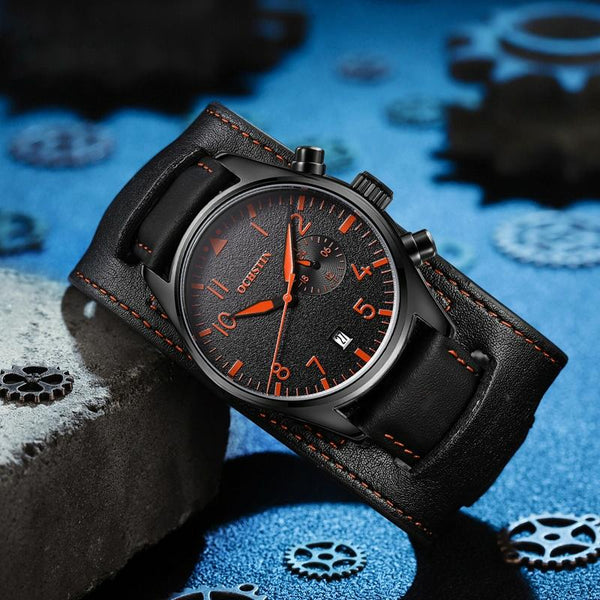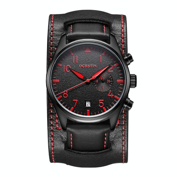 Ochstin 7228 Multifunctional Business Leather Wrist Wrist Waterproof Quartz Watch(Black+Red)