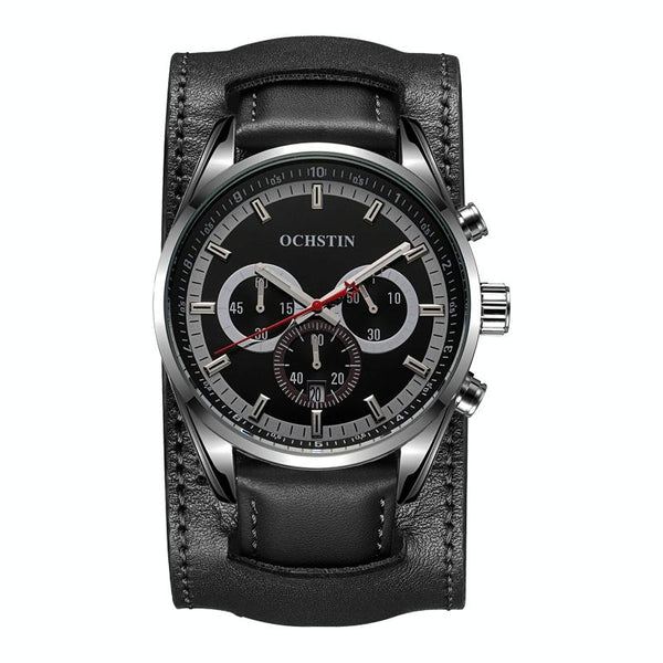 Ochstin 7229 Multifunctional Business Leather Wrist Wrist Waterproof Luminous Quartz Watch(Black+Black)