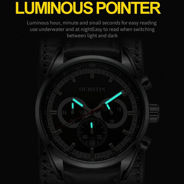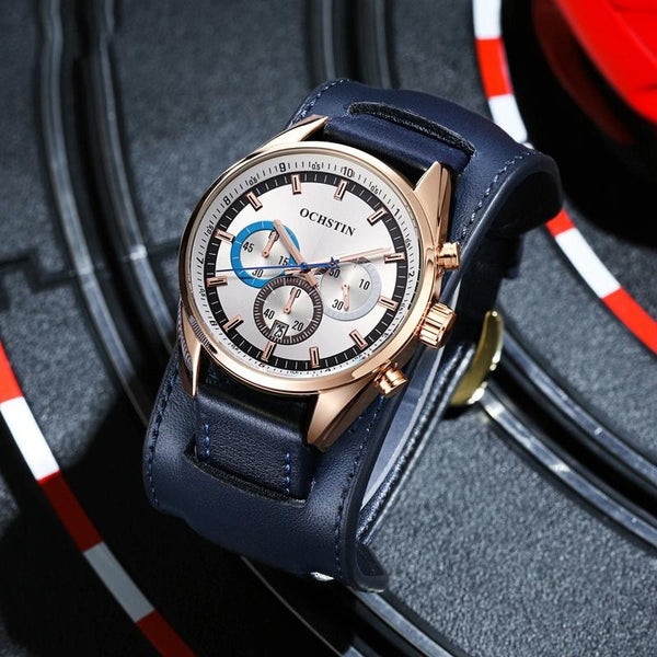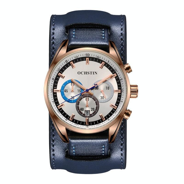 Ochstin 7229 Multifunctional Business Leather Wrist Wrist Waterproof Luminous Quartz Watch(Rose Gold+Blue)