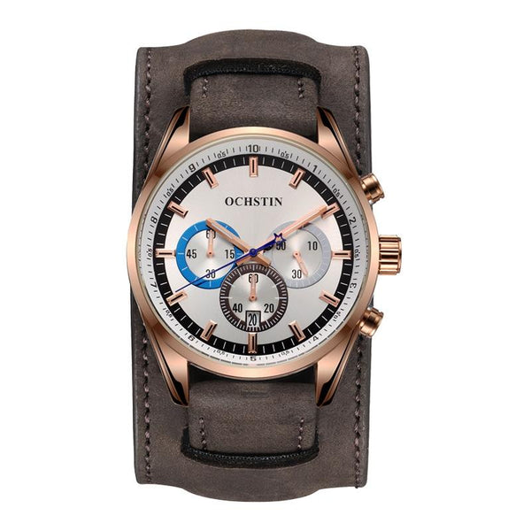 Ochstin 7229 Multifunctional Business Leather Wrist Wrist Waterproof Luminous Quartz Watch(Rose Gold+Dark Brown)