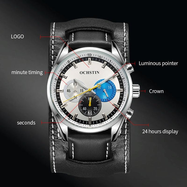 Ochstin 7229 Multifunctional Business Leather Wrist Wrist Waterproof Luminous Quartz Watch(Silver+Black)