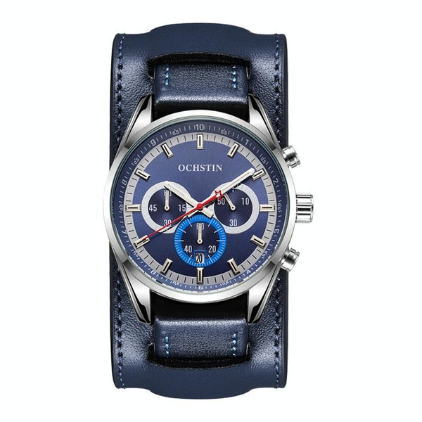 Ochstin 7229 Multifunctional Business Leather Wrist Wrist Waterproof Luminous Quartz Watch(Silver+Blue)