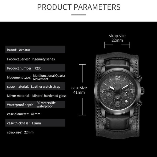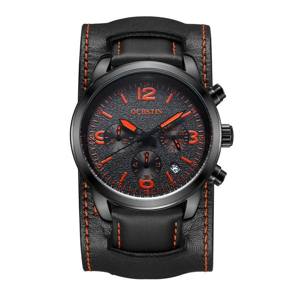 Ochstin 7230 Multifunctional Business Leather Wrist Wrist Waterproof Quartz Watch(Orange+Black)