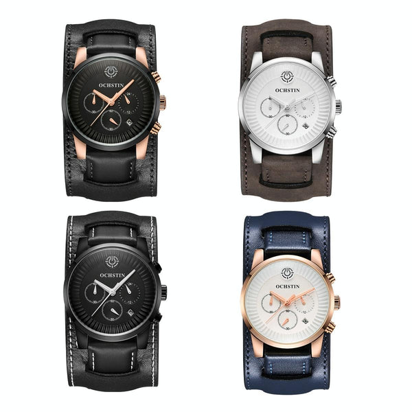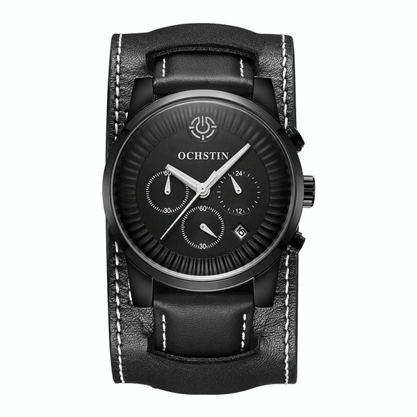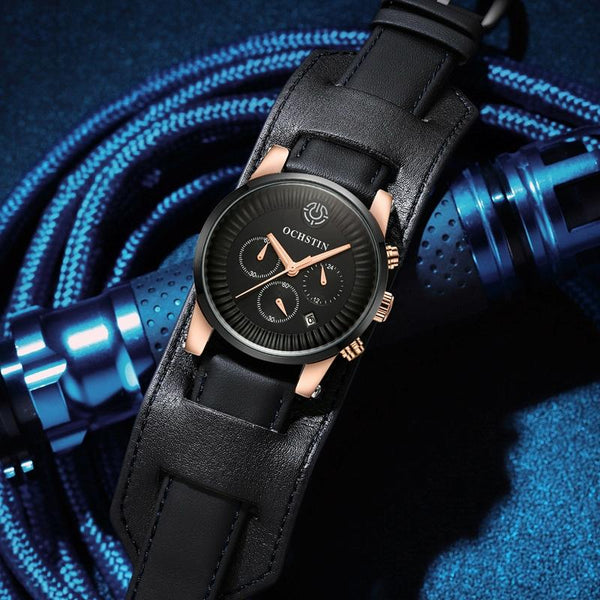 Ochstin 7232 Multifunctional Business Leather Wrist Wrist Waterproof Quartz Watch(Black+Black)