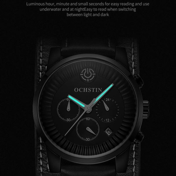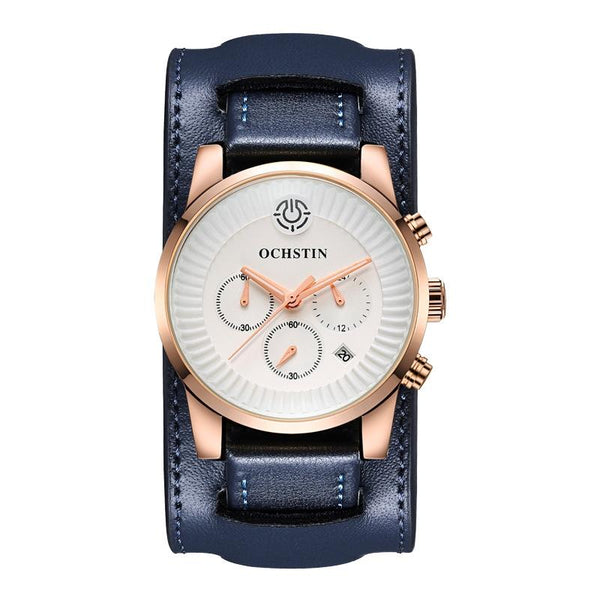Ochstin 7232 Multifunctional Business Leather Wrist Wrist Waterproof Quartz Watch(Rose Gold+Blue)