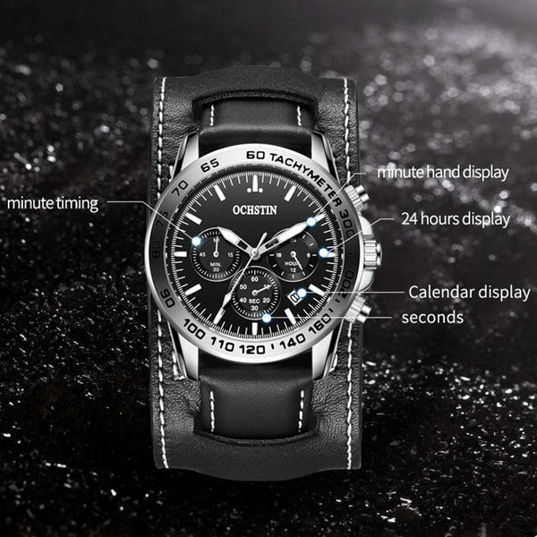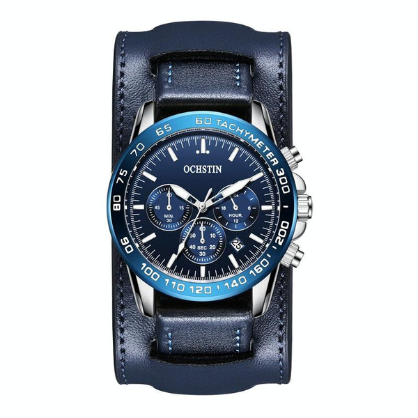 Ochstin 7234 Multifunctional Business Leather Wrist Wrist Waterproof Quartz Watch(Blue+Blue)