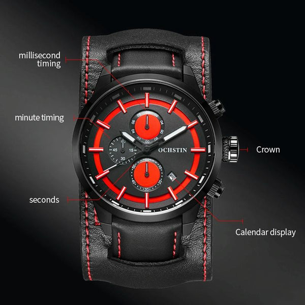 Ochstin 7235 Multifunctional Business Leather Wrist Wrist Waterproof Quartz Watch(Red+Black)