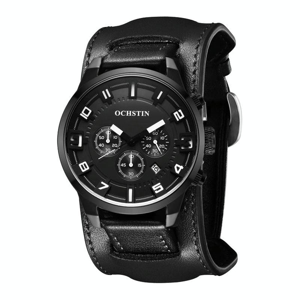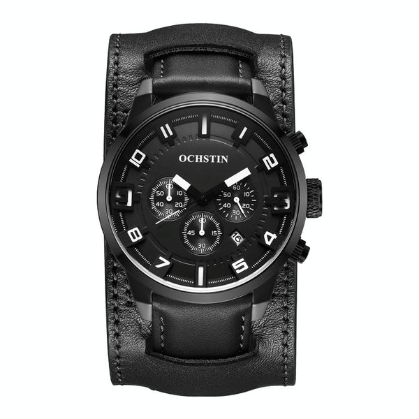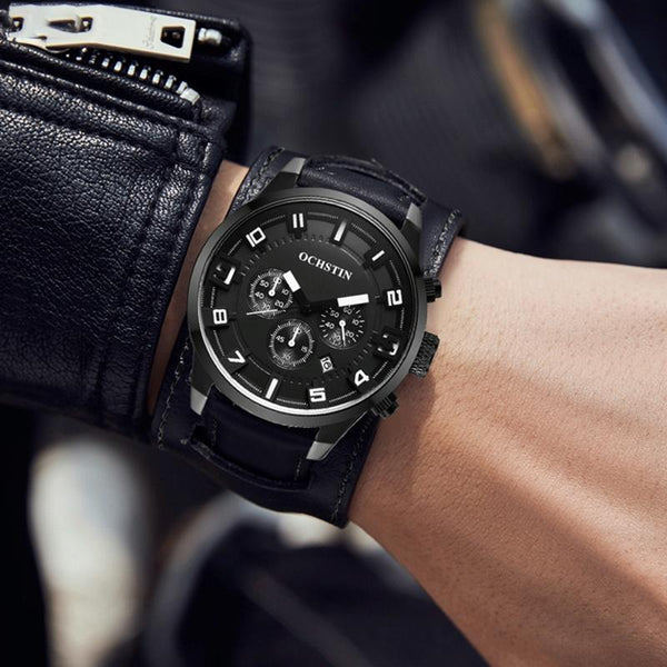 Ochstin 7236 Multifunctional Business Leather Wrist Wrist Waterproof Quartz Watch(Black+Black)