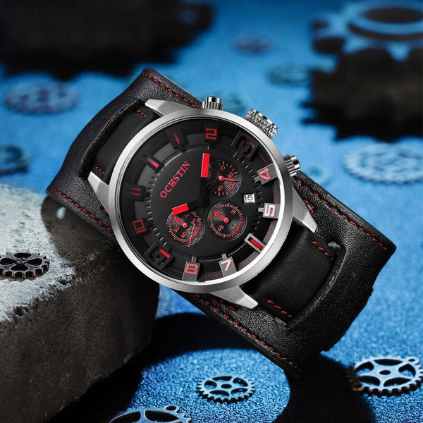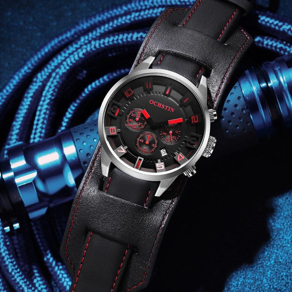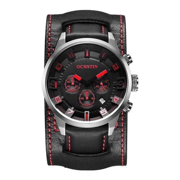 Ochstin 7236 Multifunctional Business Leather Wrist Wrist Waterproof Quartz Watch(Red+Black)