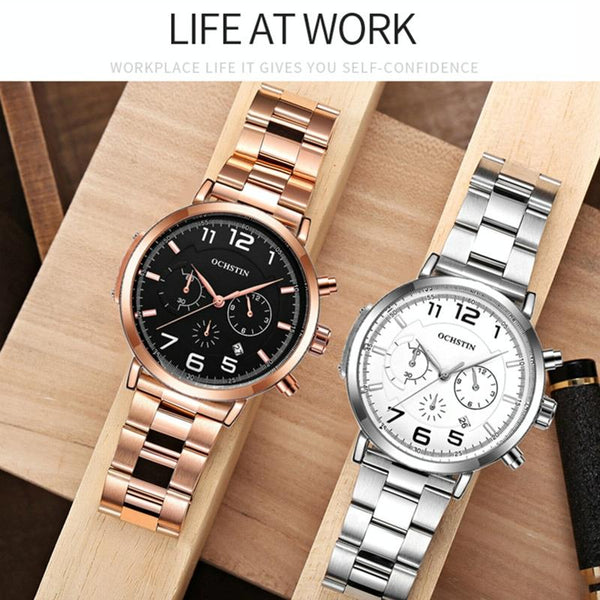 OCHSTIN 7243 Men Fashion Steel Strap Multifunctional Quartz Watch(Silver White)