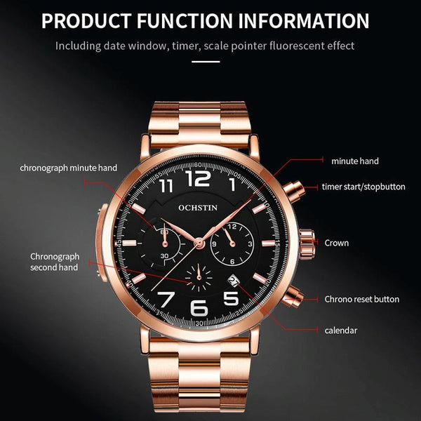 1. Movement type: multifunctional quartz movement
