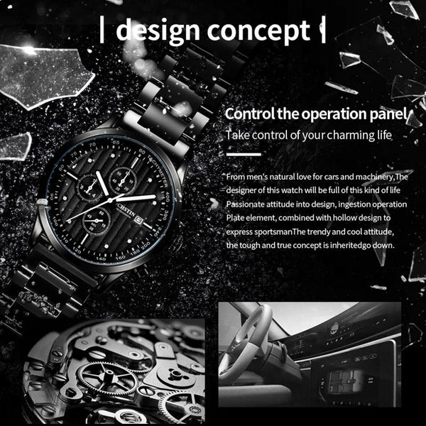 OCHSTIN 7244 Fashion Steel Strap Multifunctional Quartz Men Watch(Black Blue)