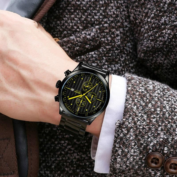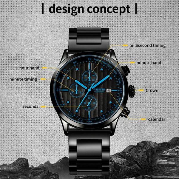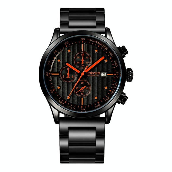 OCHSTIN 7244 Fashion Steel Strap Multifunctional Quartz Men Watch(Black Orange)