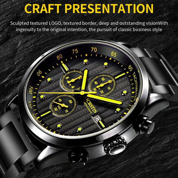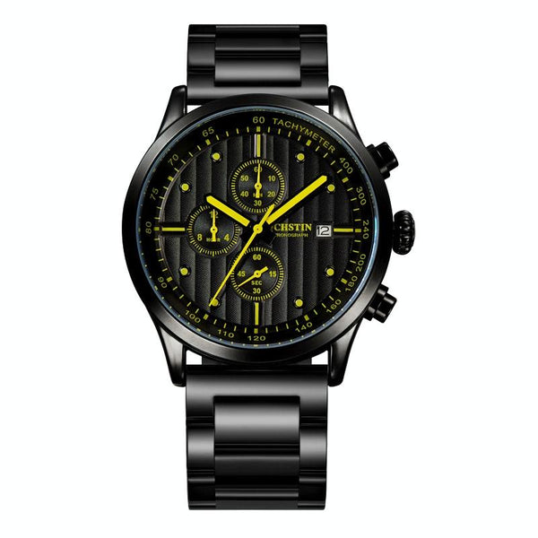 OCHSTIN 7244 Fashion Steel Strap Multifunctional Quartz Men Watch(Black Yellow)