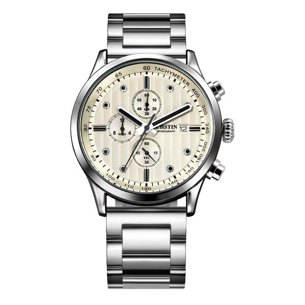OCHSTIN 7244 Fashion Steel Strap Multifunctional Quartz Men Watch(Silver White)