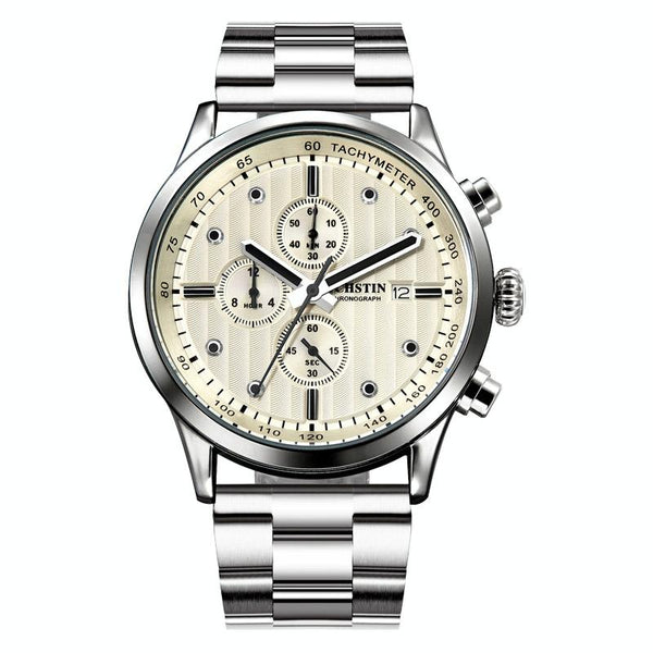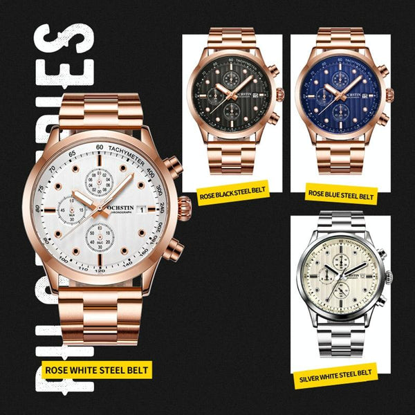 OCHSTIN 7245 Fashion Steel Strap Multifunctional Quartz Men Watch(Silver White)