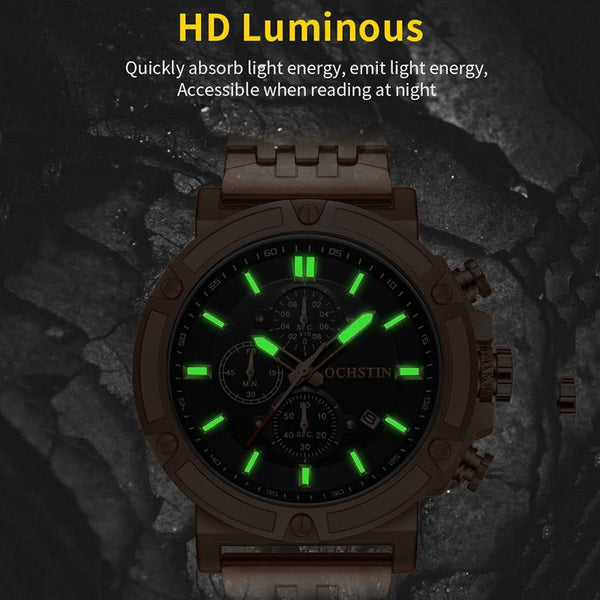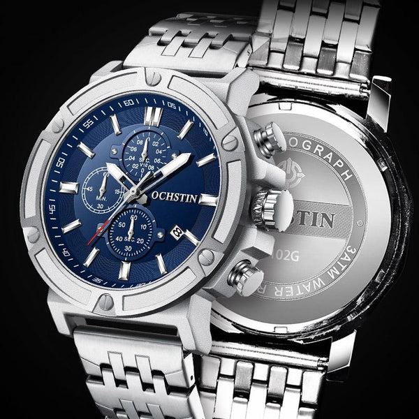 OCHSTIN 7247 Fashion Steel Strap Multifunctional Quartz Men Watch(Black)