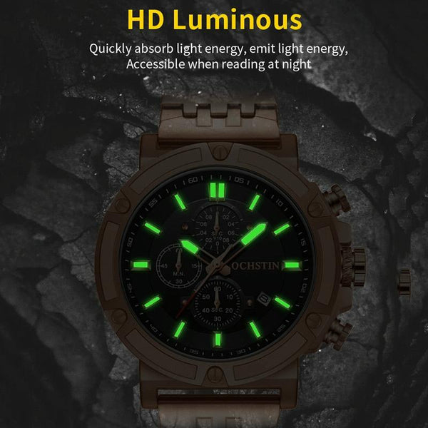 OCHSTIN 7247 Fashion Steel Strap Multifunctional Quartz Men Watch(Rose Gold Black)