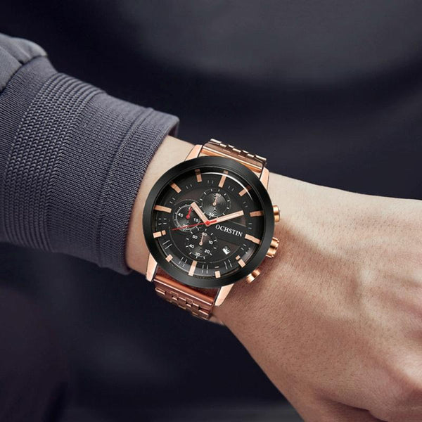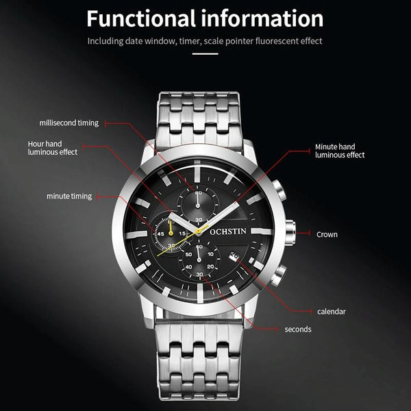 OCHSTIN 7248 Fashion Steel Strap Multifunctional Quartz Men Watch(Silver Blue)